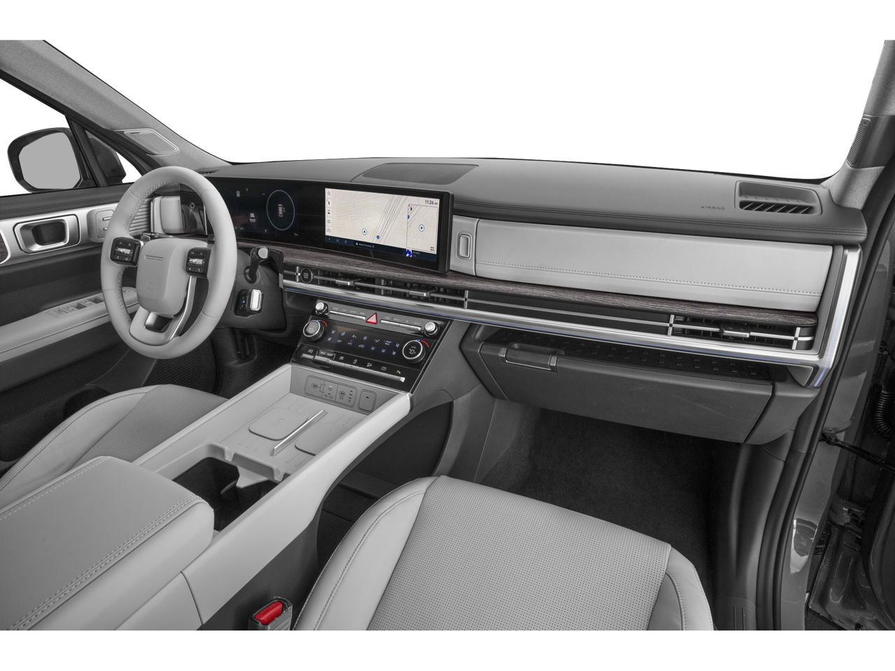 - Radio: AM/FM/HD Bose Premium Audio System -inc: 12 speakers including subwoofer, external amplifier, 12.3" wide touchscreen, Apple CarPlay and Android Auto, Bluetooth® hands-free w/wireless audio streaming, dynamic voice recognition, USB connectivity, SiriusXM, Blue Link+ connected car system, over-the-air updating capability, navigation system including traffic flow w/incident data via HD Radio (HERE) and rear seat quiet mode