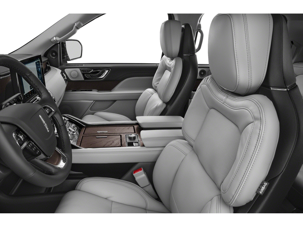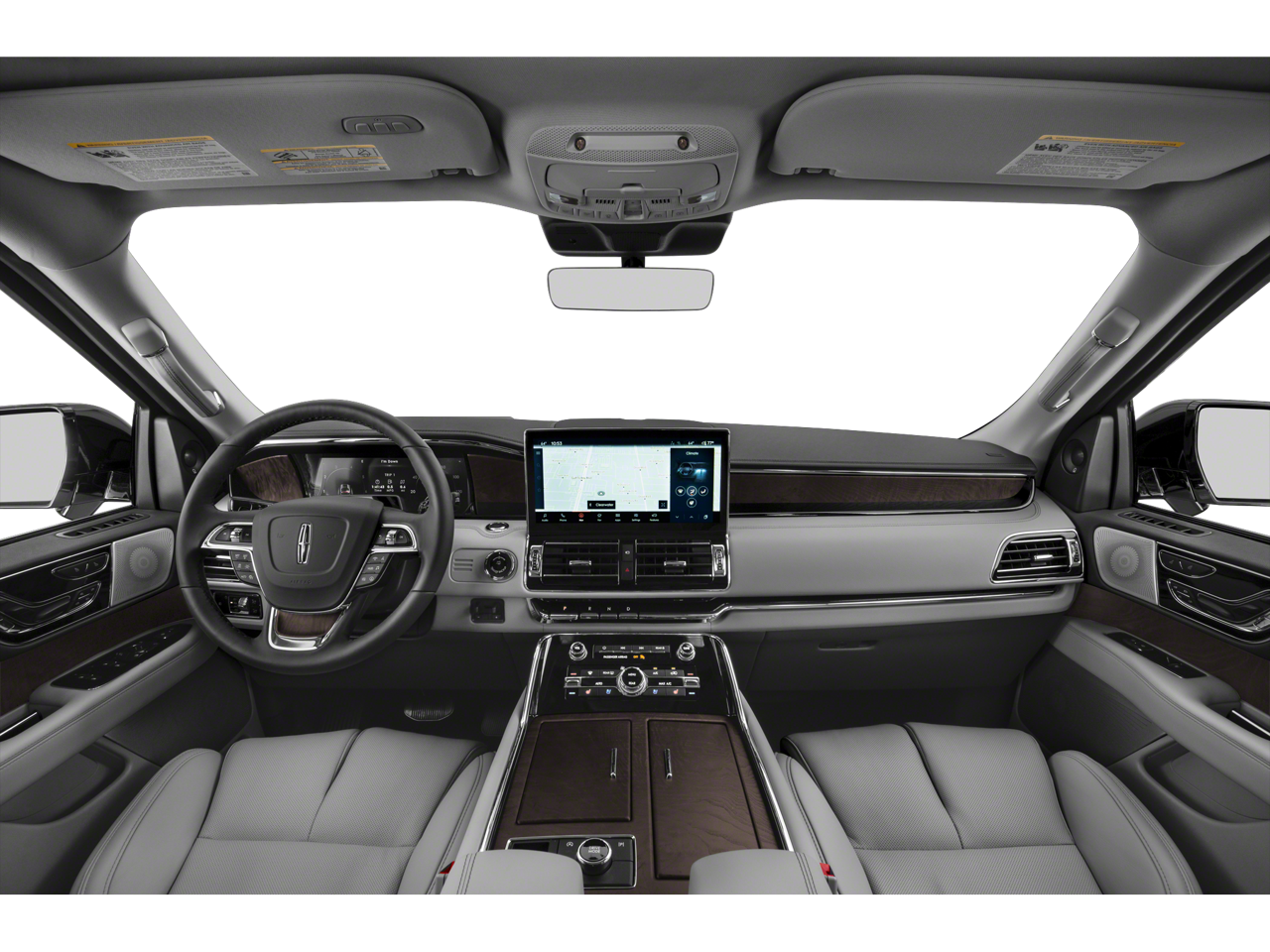 14 Speakers, 3.73 Axle Ratio, 3rd row seats: split-bench, 4-Wheel Disc Brakes, ABS brakes, Adaptive suspension, Adjustable pedals, Air Conditioning, Alloy wheels, AM/FM radio: SiriusXM with 360L, Apple CarPlay/Android Auto, Audio memory, Auto High-beam Headlights, Auto Start-Stop Technology, Auto tilt-away steering wheel, Auto-dimming door mirrors, Auto-dimming Rear-View mirror, Auto-leveling suspension, Automatic temperature control, Bodyside moldings, Brake assist, Bumpers: body-color, Compass, Delay-off headlights, Driver door bin, Driver vanity mirror, Drivers Seat Mounted Armrest, Dual front impact airbags, Dual front side impact airbags, Electronic Stability Control, Emergency communication system: 911 Assist, Equipment Group 100A Standard, Exterior Parking Camera Rear, Four wheel independent suspension, Front anti-roll bar, Front Bucket Seats, Front dual zone A/C, Front fog lights, Front License Plate Bracket, Front reading lights, Fully automatic headlights, Garage door transmitter, Genuine wood dashboard insert, Genuine wood door panel insert, Heated door mirrors, Heated front seats, Heated rear seats, Heated steering wheel, HVAC memory, Illuminated entry, Lane Departure Warning System, Leather steering wheel, Lincoln Soft Touch Auto Htd/Ventiltd Comfort Seats, Low tire pressure warning, Memory seat, Navigation system: Connected Navigation (1-year trial), Navigator Plus Exterior Package, Occupant sensing airbag, Outside temperature display, Overhead airbag, Overhead console, Panic alarm, Panoramic Vista Roof w/Power Sunshade, Passenger door bin, Passenger seat mounted armrest, Passenger vanity mirror, Pedal memory, Power adjustable rear head restraints, Power Deployable Illuminated Running Boards, Power door mirrors, Power driver seat, Power Liftgate, Power passenger seat, Power steering, Power windows, Radio data system, Radio: Revel Audio System w/Satelllite/AM/FM/